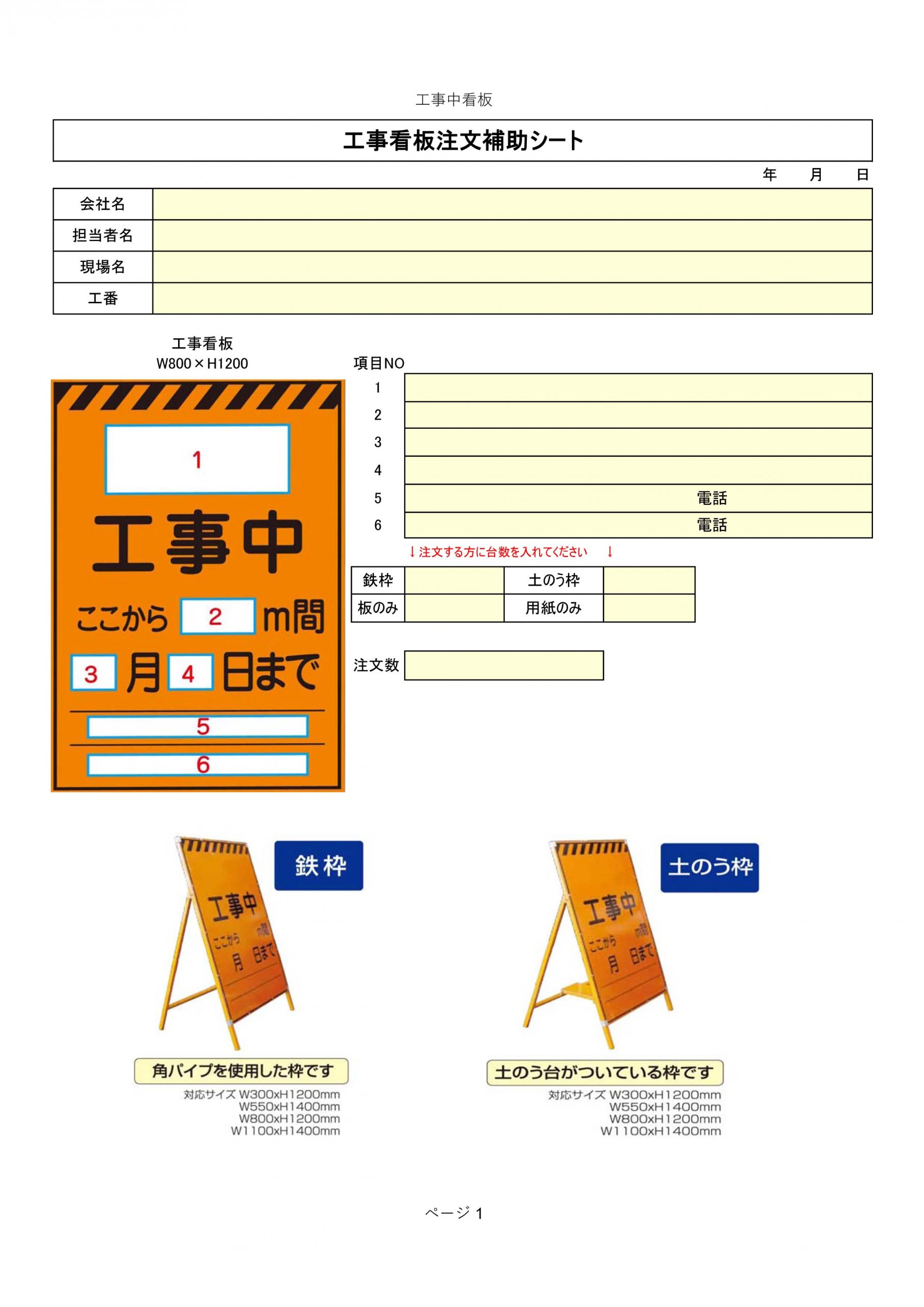 ■工事中看板フォーム(プリント用)